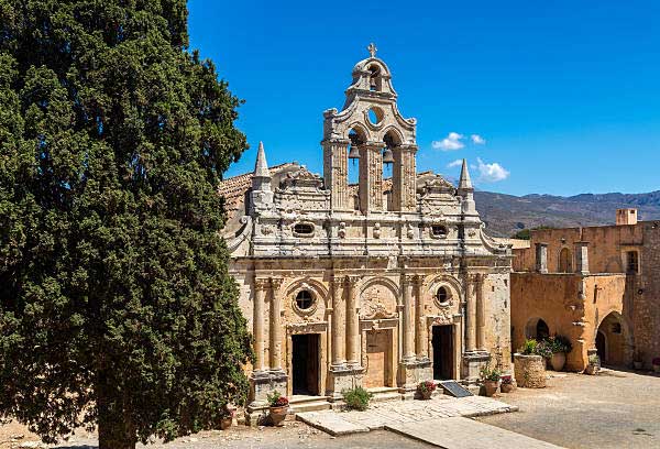 De tous les sites naturels et artificiels mémorables de la Crète, aucun n’a autant d’importance pour ses habitants que ce monastère situé à un peu plus de 20 kilomètres au sud-est de Réthymnon.